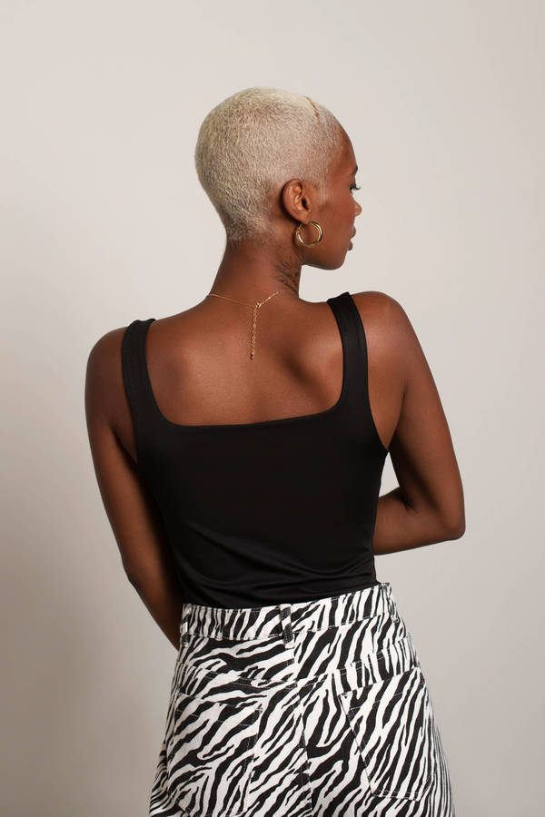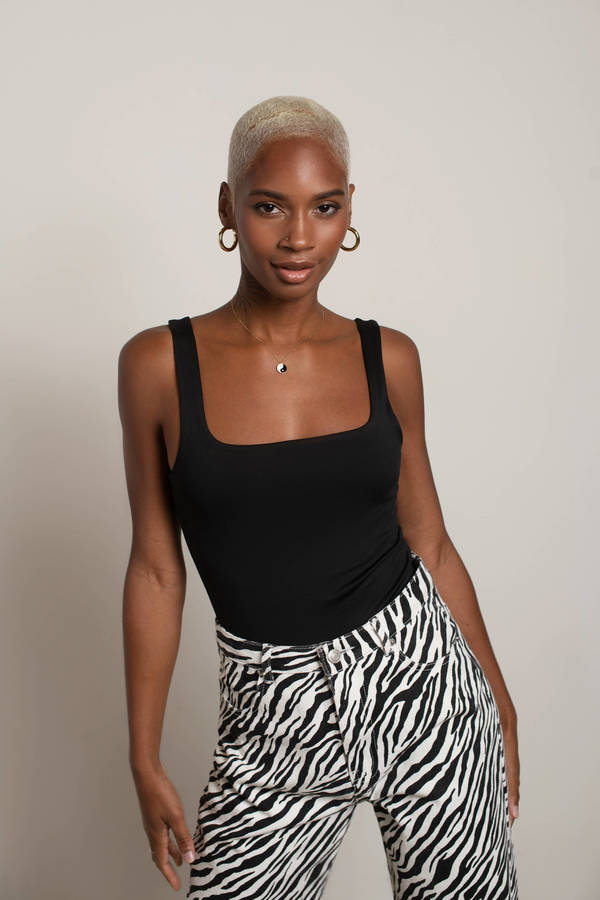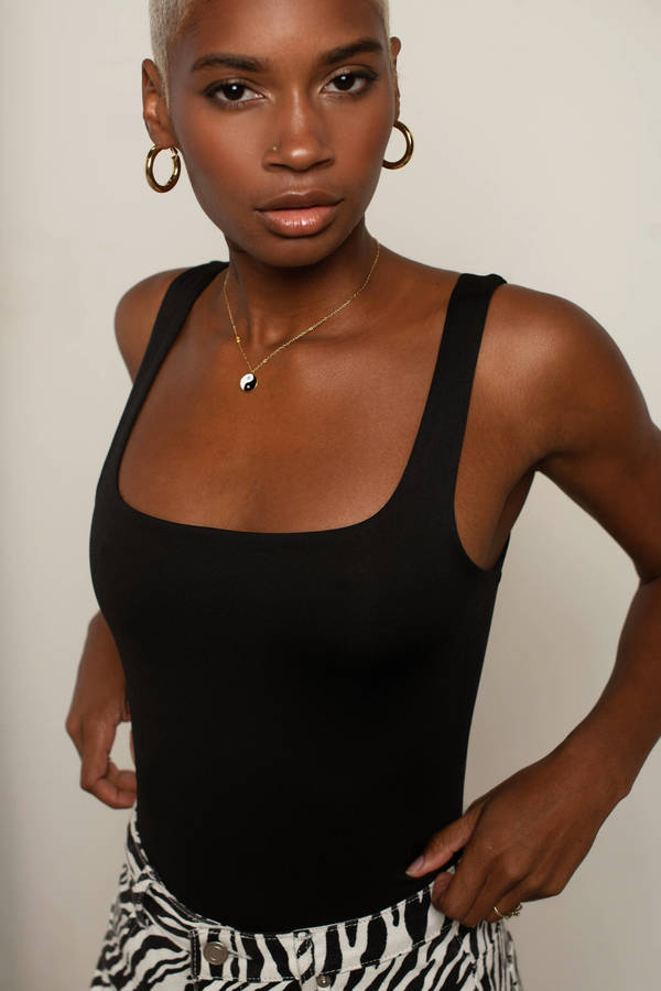 The Closer To Me Black Square Neck Bodysuit is the perfect wardrobe essential. No more untucking in this bodycon bodysuit that accentuates all of the right features. Pair under high-waisted statement pants and boots for a chic going-out look.