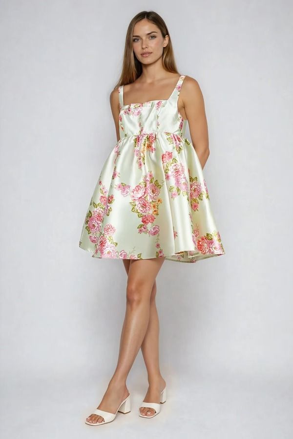 The Floral Daydream Babydoll Satin Mini Dress in Sage Pink is the perfect balance of playful and polished, with its feminine floral print and flattering square neckline. This dress is ideal for brunch dates, garden parties, or any occasion where you want to bring a touch of charm. The soft satin fabric and flared skirt ensure both comfort and style, making it an easy choice for your next sunny outing. Pair it with delicate accessories and strappy heels for a look that’s effortlessly chic!