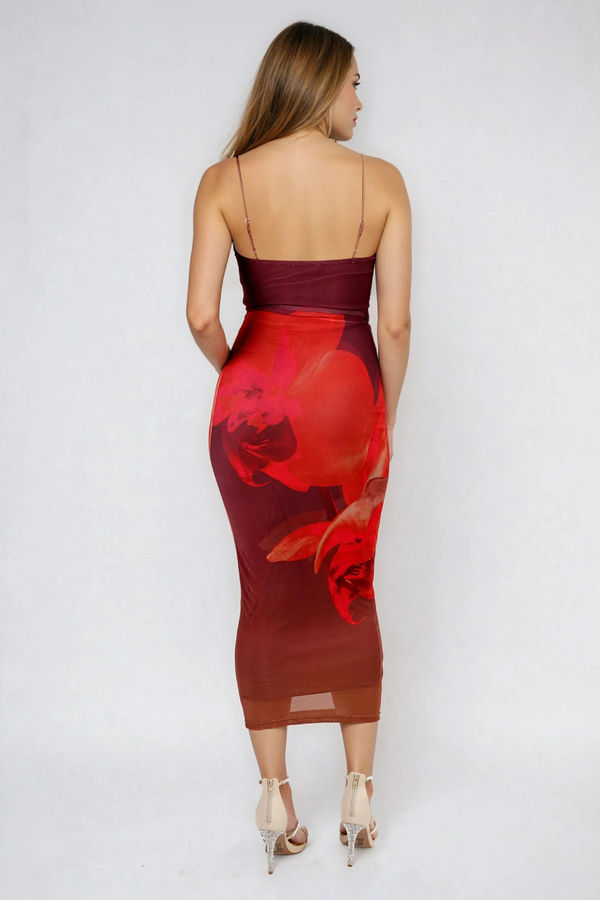 Romantic with a bold twist, the Stay for More Floral Bodycon Midi Dress in Burgundy Red features a structured sweetheart bodice, delicate straps, and a striking floral print that makes every move feel intentional. Designed to contour smoothly and flatter from top to hem, it blends elegance with effortless allure. Perfect for weddings, cocktail events, date nights, dinner parties, and special occasions when you want to feel confident, feminine, and unforgettable.