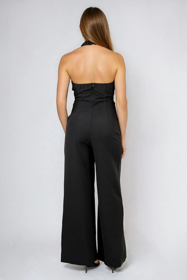Smart Move Gold Trim Halter Jumpsuit - Black