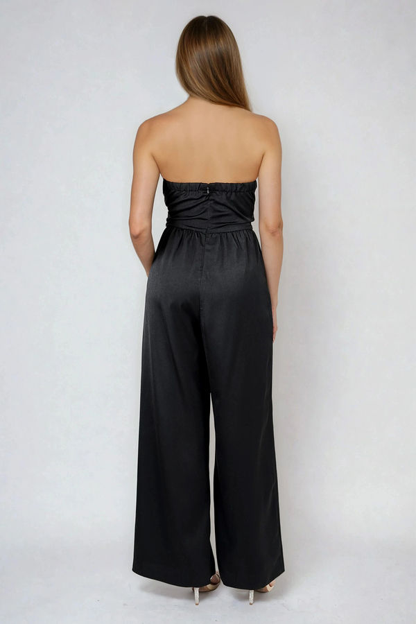 Strike a Pose Cutout Satin Jumpsuit - Black