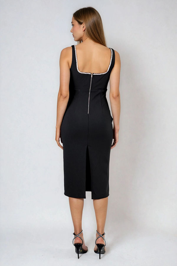 Chic with just the right amount of sparkle, Quiet Glam Embellished Bodycon Midi Dress in Black is your answer to effortless glam. Designed with a sleek body-skimming fit, a flattering notched neckline trimmed with subtle embellishment, and clean lines that elongate your silhouette, it delivers confidence without the fuss. Comfortable yet striking, it’s perfect for cocktail parties, date nights, weddings, holiday dinners, or any event where polished, elevated style is a must.