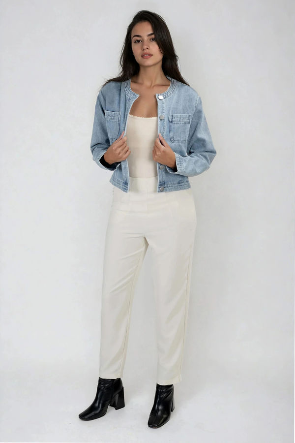 Effortless and versatile, the Modern Icon Cropped Denim Jacket in Lt Denim is your go-to layer for everyday polish. Designed with a clean collarless neckline, structured seams, and functional pockets, it adds just the right amount of edge without trying too hard. Easy to dress up or down, it’s perfect for casual workdays, weekend errands, coffee runs, or travel days when you want to look put-together with zero effort.