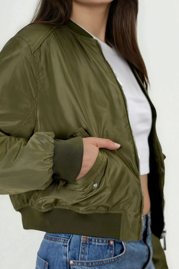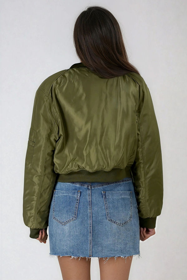 Fresh Vibes Cropped Bomber Jacket - Olive
