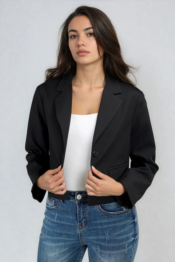Polished with a playful edge, the Soft Escape Boxy Cropped Blazer in Black is your go-to for instant confidence. Designed with a sharp lapel, tailored boxy fit, and just-right cropped length, it elevates everything from denim to dresses without feeling stuffy. Easy to dress up or down, it’s perfect for office days, dinner dates, meetings, or last-minute plans when you want to look put-together with zero effort.