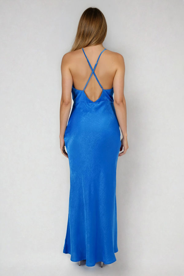 Bold Presence Cowl Satin Maxi Dress - Bright Blue