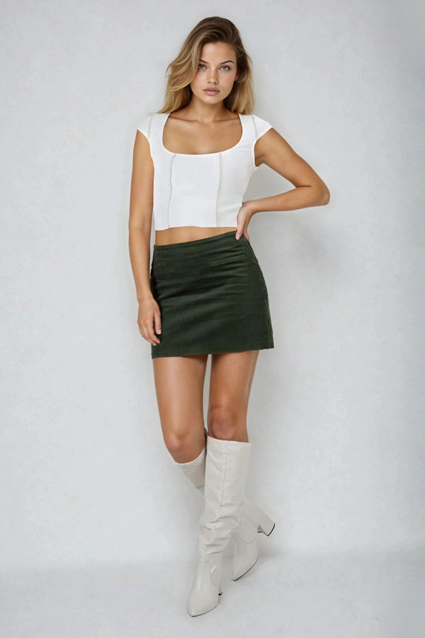 Chic, timeless and made to elevate your everyday lineup, this Stop Right Here Corduroy A-line Mini Skirt in Smoky Green features a clean tailored fit with subtle pocket detailing and a smooth, structured feel that flatters from every angle. Easy to dress up or down, it’s perfect for brunch dates, casual office days, coffee runs, weekend plans, or a polished day-to-night look with boots or heels.
