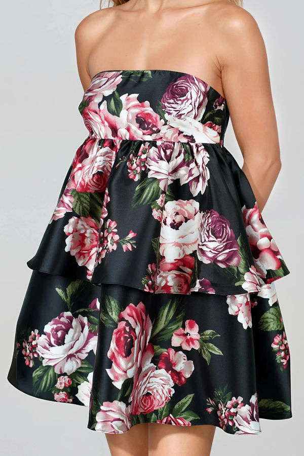 - Strapless Floral Mini Dress