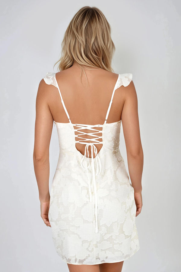 Sweetheart Muse Ruffle Lace Up Back Mini Dress - Off White