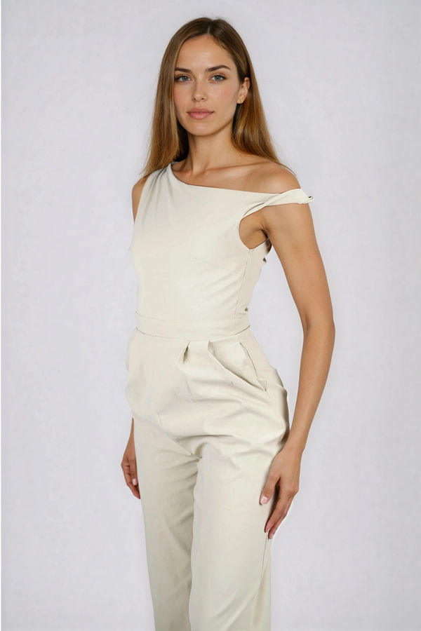 Elevate Charm One Shoulder Jumpsuit - Stone