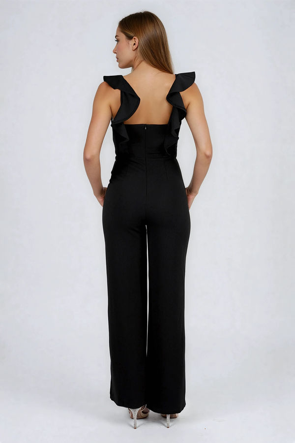 Flirty, fearless energy defines this Step Into Glow Ruffled Jumpsuit in Black with its soft shoulder ruffles, flattering waist, and flowy wide-leg fit. Designed to move with you, it hugs in all the right places while keeping things comfy and chic. Style it with heels or sandals for brunch dates, birthday dinners, rooftop nights, or wedding guest looks. This is your go-to when you want drama, ease, and confidence in one outfit.