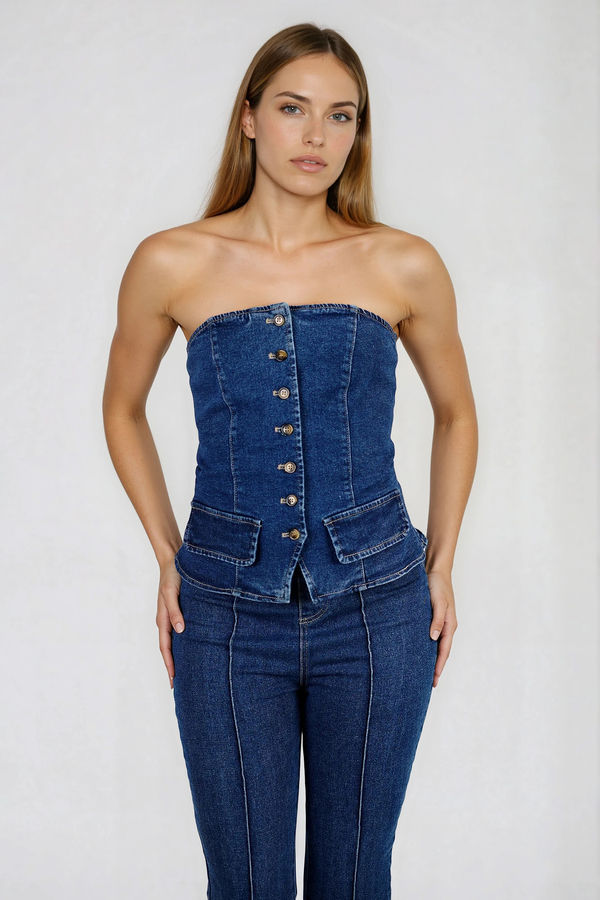 - Strapless denim jumpsuit