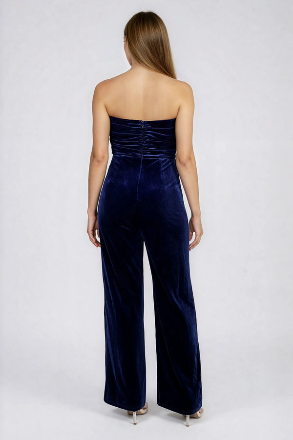 - Sweetheart Velvet Pearl Trim Strapless Jumpsuit