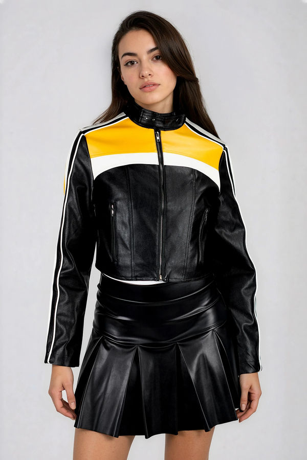 Night Rider Cropped Moto Jacket - Black/Yellow