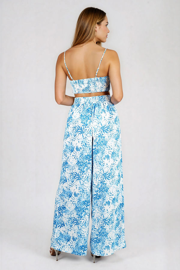 Pack Light Print Smocked Cropped Top & Pants Set - Blue