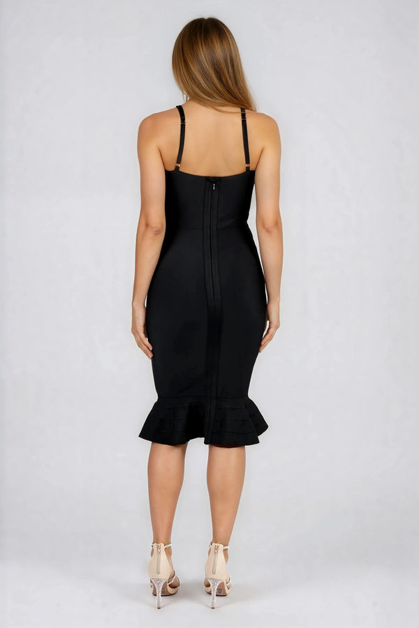 Soft Obsession Mermaid Bandage Midi Dress - Black